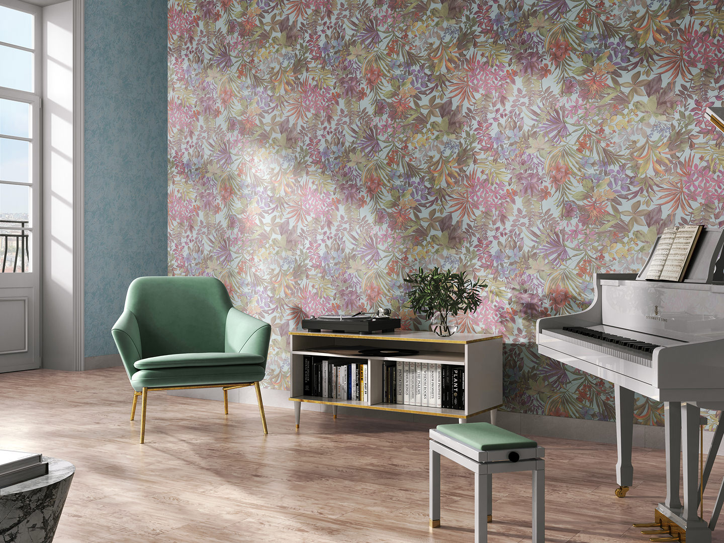Обои виниловые Джангл мотив, голубой цветной
