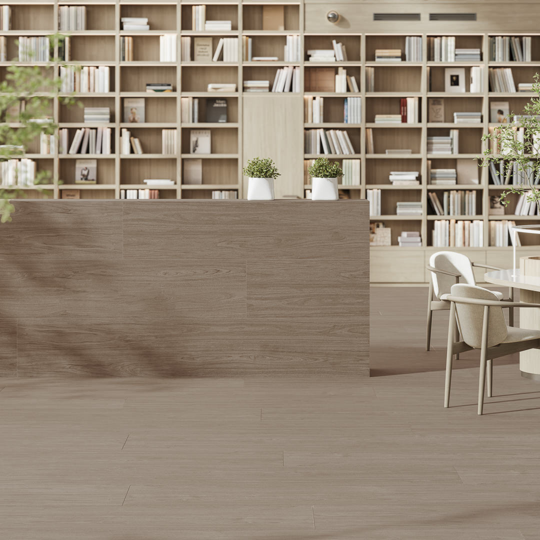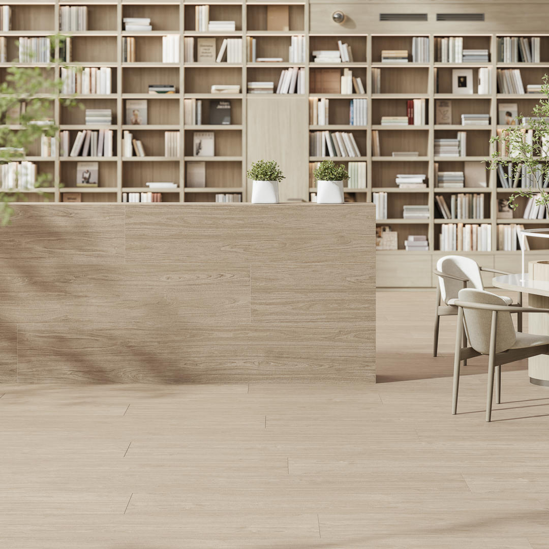 В формате 60х119,5 представлены материалы с увеличенной толщиной 20 мм. Утолщённый керамогранит с эстетикой светлого дуба – отличное решение для пространств, где нужна повышенная стойкость к нагрузкам, при этом важна достоверная природная эстетика.