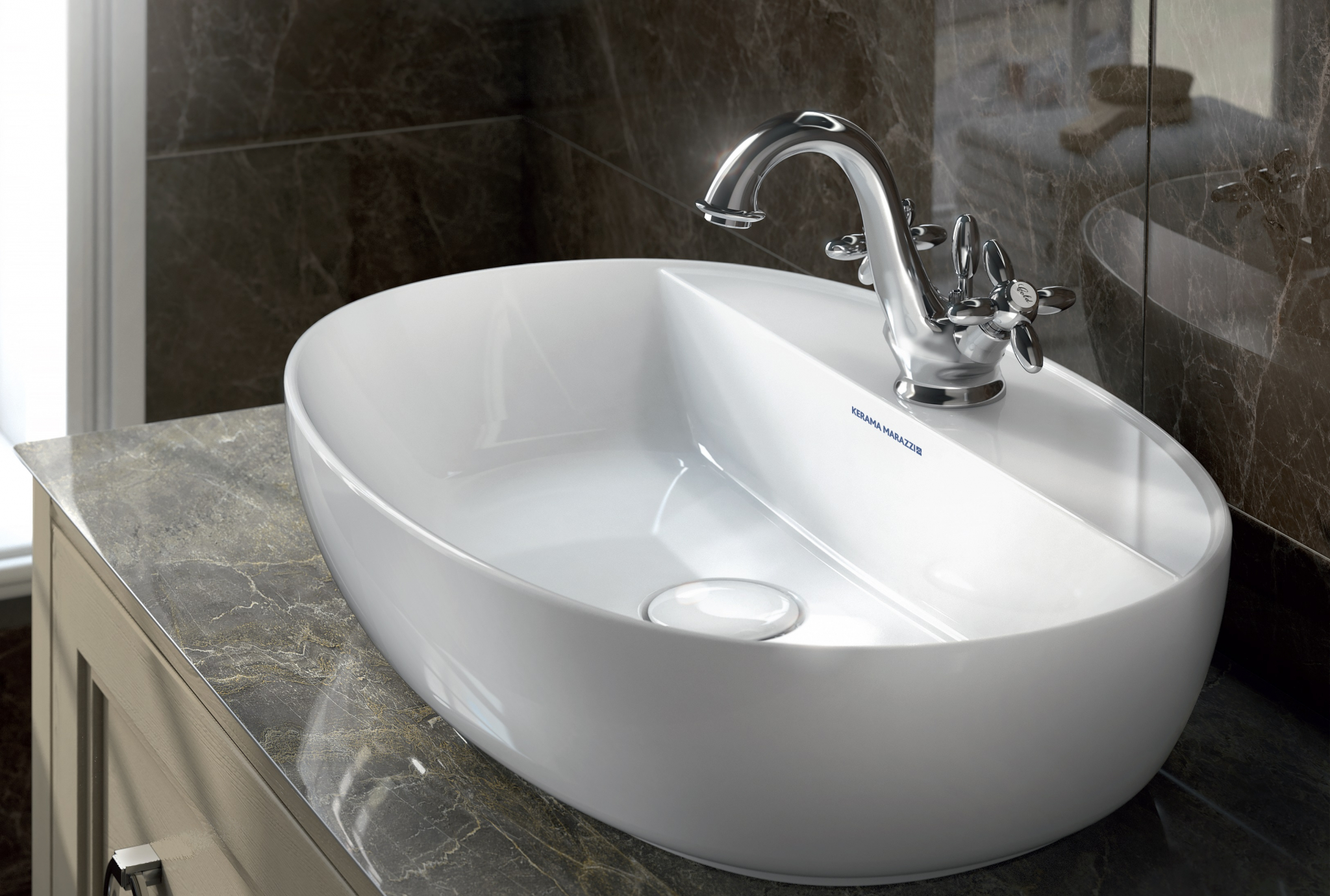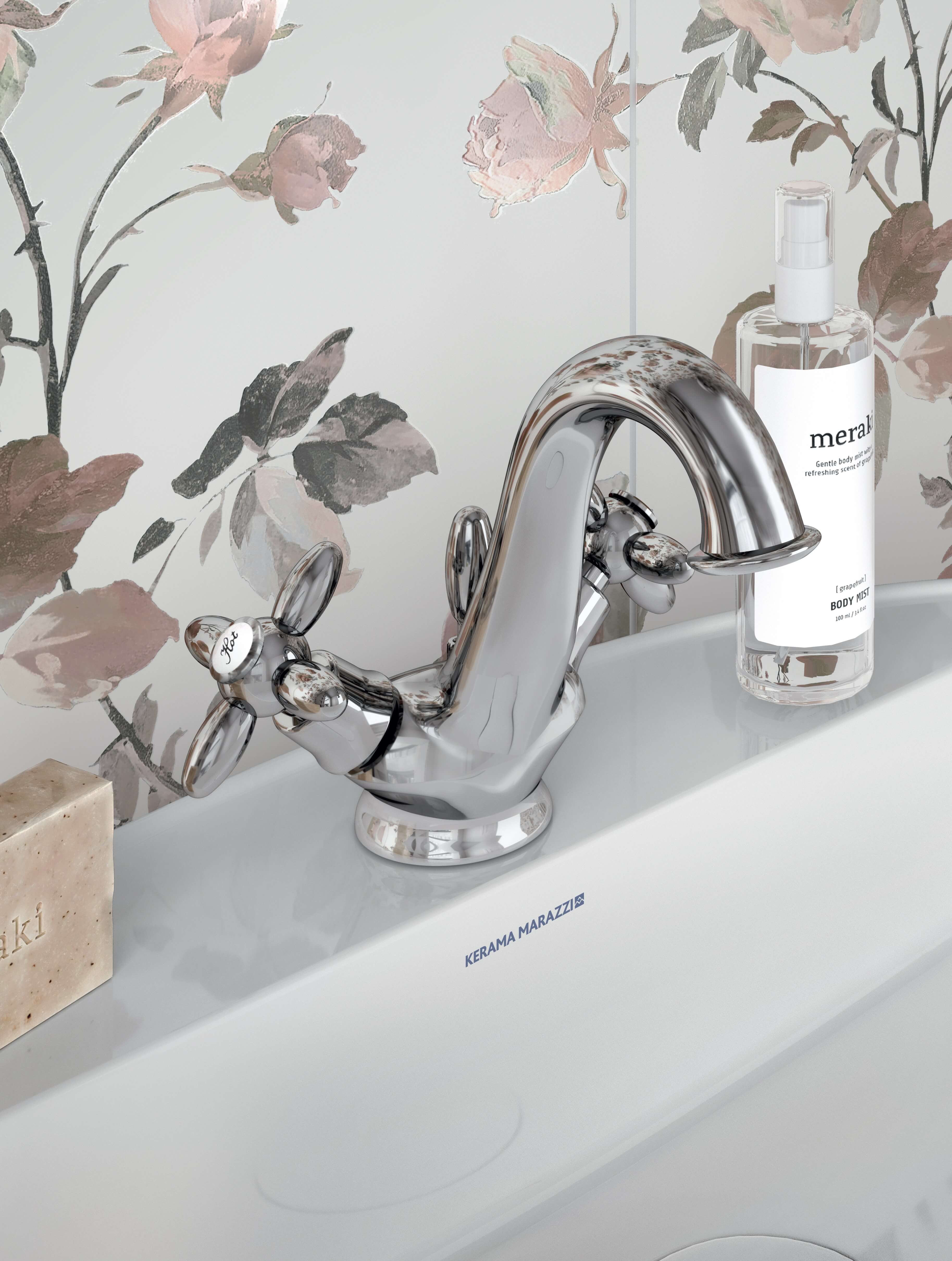 Серия «Муза», благодаря своему ретро стилю, позволяет воссоздать в интерьере атмосферу барочных времен, но в современном прочтении. Вневременная элегантность придаёт ей оттенок богатства и шика. Душевые лейки с плавными округлыми линиями внешне походят на телефонные трубки начала 20 века. А на керамических вставках на вентилях витиеватым шрифтом указана температура воды. Муза — eдинственная серия в ассортименте KERAMA MARAZZI, где представлены смесители с двумя вентилями. Для тех, кому потёртая бронза покажется слишком смелой, предлагаются аналогичные хромированные модели.