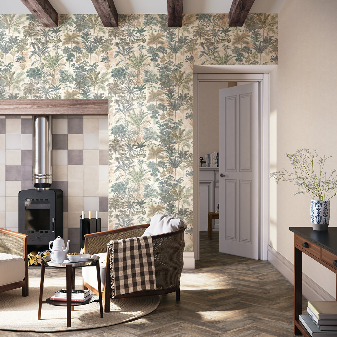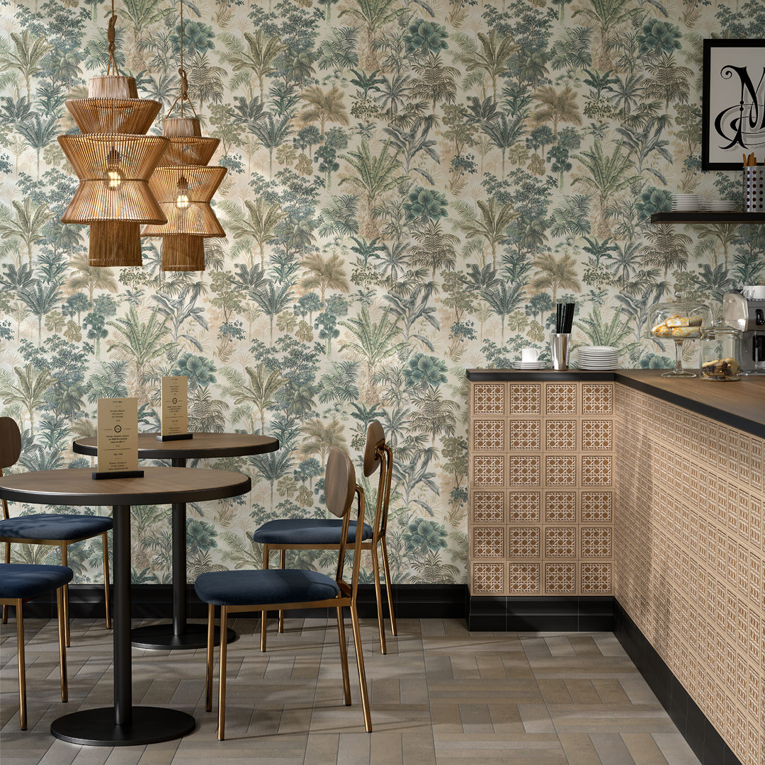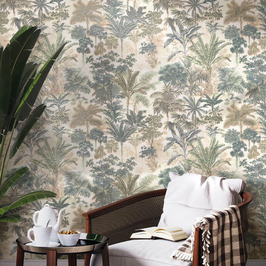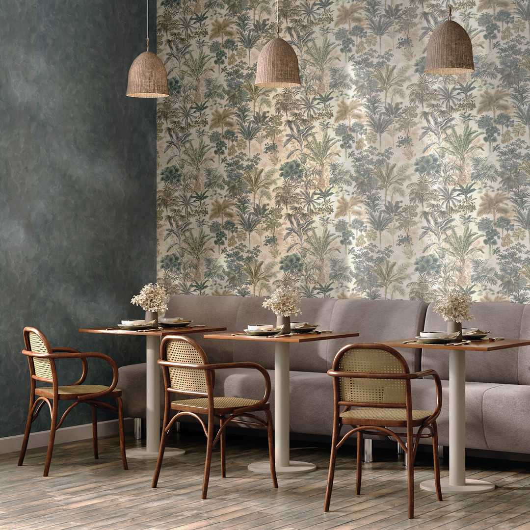 Обои виниловые Оазис мотив, тёмный зелёный